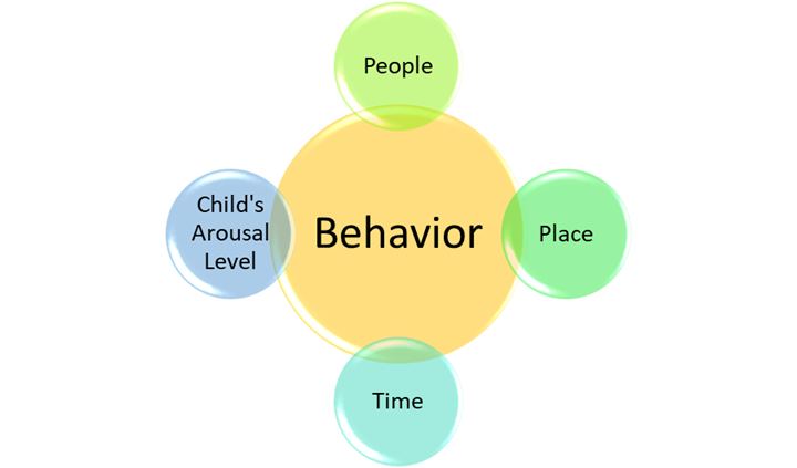 When understanding a child’s behavior, consider both their internal state (arousal) and the forces being placed on them by the environment. Regulate these as much as possible to control the demands that can lead to undesirable behaviors.