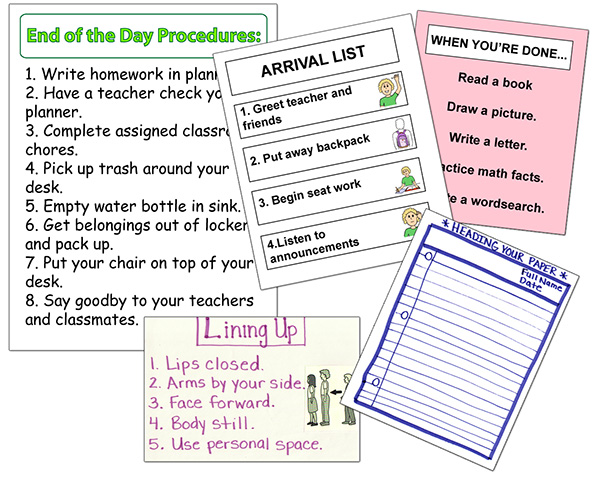 In order to successfully manage a room full of students, you must establish clearly dened procedures. As the person in charge, it is your responsibility to put procedures in place to ensure a smooth operation and a safe environment for learning. When the students enter the room on the rst day of school, assume that they know nothing—how to walk, how to talk, how to raise their hand, how to sharpen a pencil. Any activity that does not lend itself to creative expression requires procedures. When introducing a new procedure, state the expectations of your students and show them how meet the expectations, practice the procedure frequently, then reinforce it through praise. Finally, they will become routines.