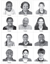 The last part of this section combines the different expressions discussed earlier in print activities and contains solution sheets for the previous Word Searches. As noted before, facial clues and feelings are very individual and these activities are meant to be a starting point for understanding how to isolate and understand what people may be expressing with their faces. Once these activities are completed it is recommended that you generalize these ideas by helping a child learn to read the facial clues and feelings on the faces of people around them.