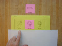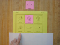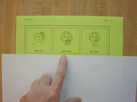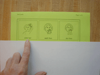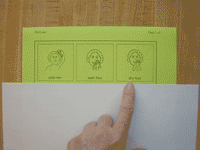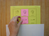 Use the visual color change to teach Reading Order by making 2 copies of the page in 2 different colors. Laminate or cover pages with clear contact paper. Cut one page into separate images or words. As a child reads an image or word, place the cut picture over the identical one on the page being read. As the page is read, the color will visually change in the correct read pattern. |