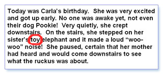 Give your student a short paragraph to read and have him or her find a particular word in the paragraph. |
