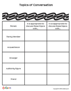 Overview Graphic Organizers are teaching tools designed to lay out important information in a visual way. Many children and adults with learning differences benefit from using graphic organizers that allow them to learn and process abstract information or difficult concepts into visual "chunks". The graphic organizers below have been developed by Do2Learn in conjunction with educational consultants from Spectrum Resources of North Carolina, Inc. Some of these organizers can be modified for your own personal use by changing the key information within the format. Several of the organizers are designed for use with social skills concepts and can be used with individuals functioning at or above a 3rd grade reading/writing level. Instructions are listed on how to best use the organizers. We hope you find them as useful as we do!
