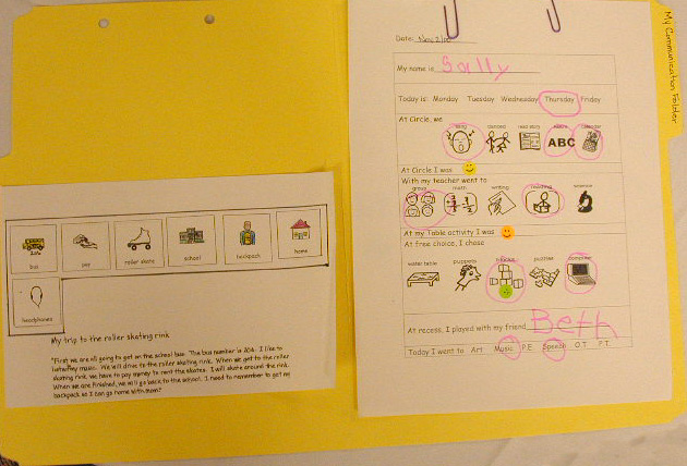 on a daily or weekly basis, or make some "home activity" forms that explain weekend activities for the child to share at
