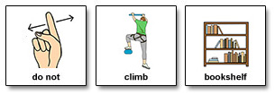 Story strips can be used to teach many safety skills such as do not climb, do not touch the iron, or how to cross the street safely.