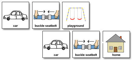 Story strips are an effective way to review an experience. Strips can be used repeatedly to remind someone of what happened when he went to the playground or on a class trip roller skating.