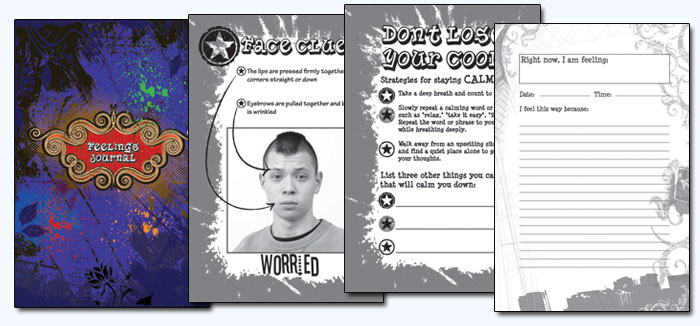 is geared towards teens and young adults and offers specific information about different types of emotions. Each emotion is depicted within a photograph and specific face clues are given to help recognize this emotion in others. A journal activity is included with each emotion that helps the reader draw connections between the abstract concept of each emotion and how it relates to everyday experiences.